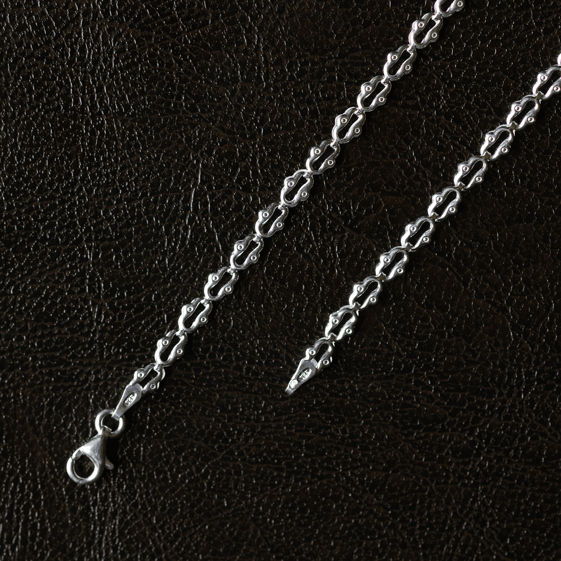 925 ‰ sterling ezüstből készült. Ezüst, kézzel fűzött lánc. A láncok ötvözésénél oxidáció mentes ötvözetet használunk, így termékünk időtállóbb lesz.